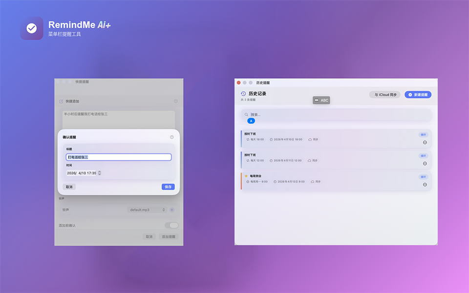 Quick Add on Mac, capture on iPhone. Lite for everyday use; upgrade to Premium for iCloud, AI parsing, and stronger alerts.